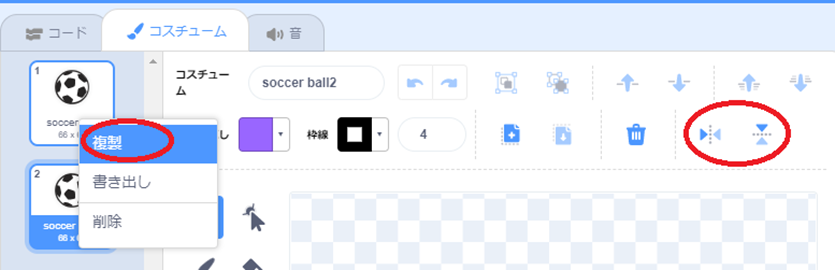 コスチュームを複製し、画像を上下反転、左右反転させましょう。コスチューム上で右クリックすると、このダイアログが出ます。